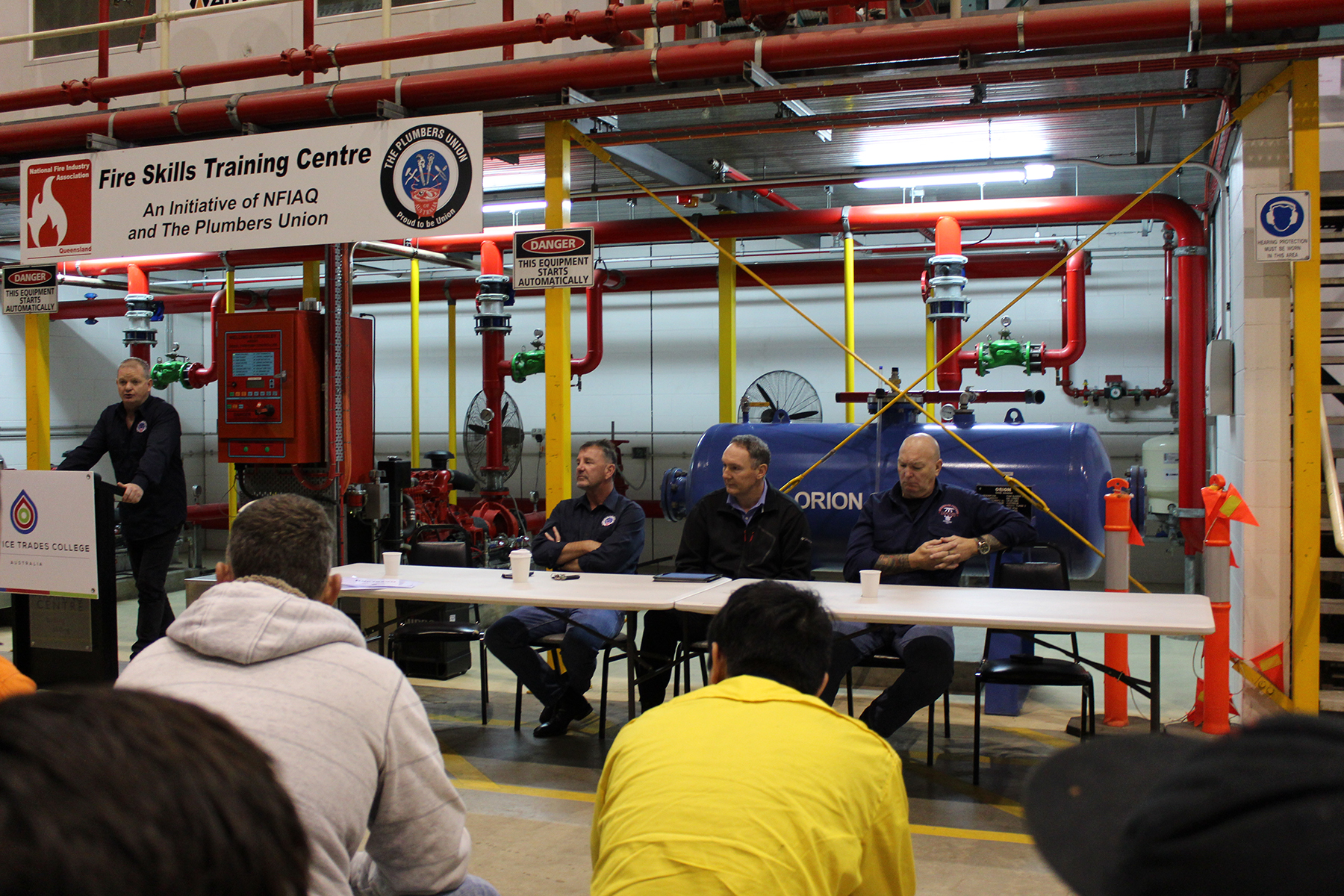 A very exciting day at STC last Friday morning with Opposition Leader Bill Shorten, local Queensland Senators Chris Ketter and Anthony Chisholm along with other VIP’s attending a PPTEU and NFIA industry meeting to discuss inspect, test and servicing issues (in light of the recent tragic fire in England). Discussion was especially focused on growing examples of unlicensed and unqualified people doing Fire Protection work in Queensland as well as the push by some less reputable industry bodies to water down the training requirements of Fire Protection Tradesmen.